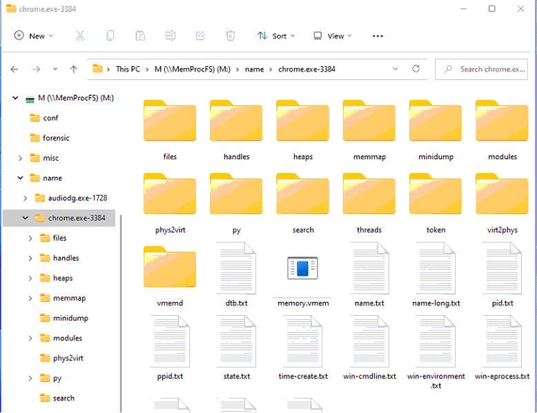 Then the target memory will be mounted, and from there, you can investigate the memory image by exploring drive M, which is the default drive letter.