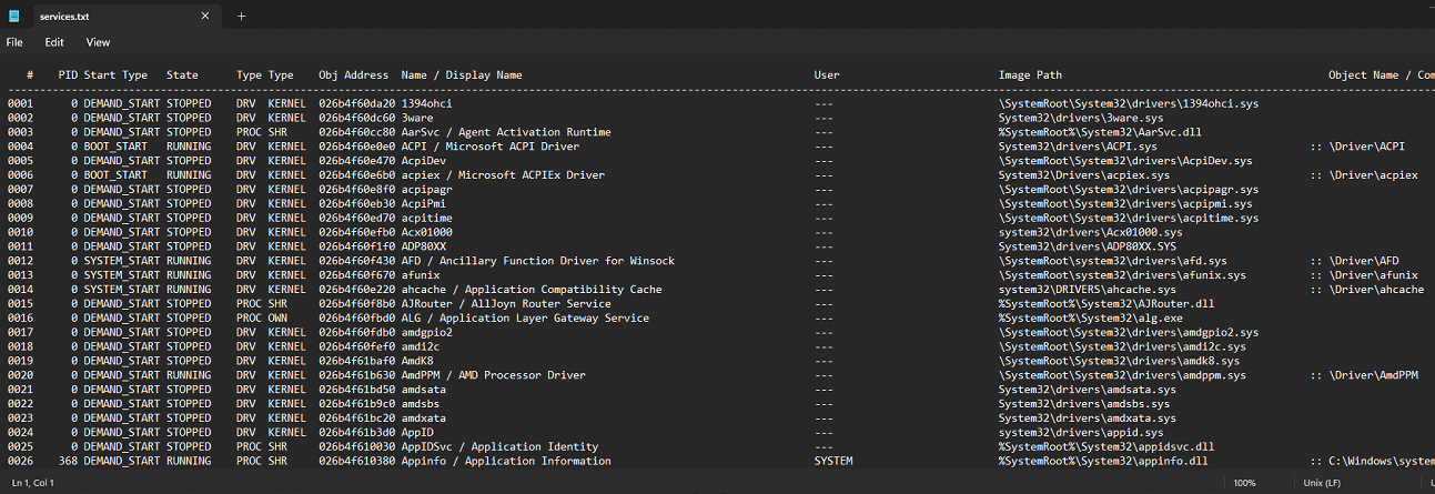 Navigate to the path M:\sys\services and review the list of services running on the system. Pay close attention to abnormal services; you may spot C2 services or the potential use of vulnerable drivers or rootkits.